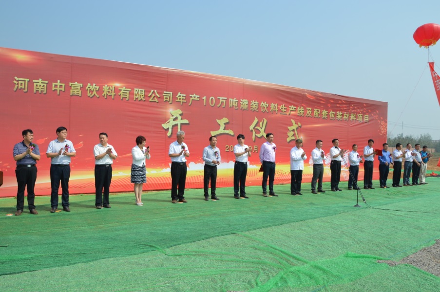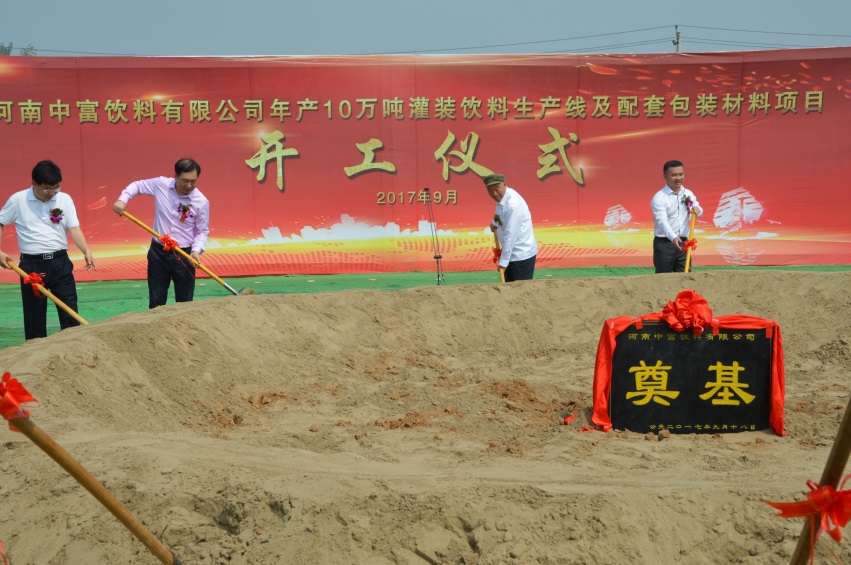 2017年9月18日,天空澄碧,纖云不染,河南中富隆重舉行了“年產(chǎn)10萬(wàn)噸灌裝飲料線及配套包裝材料項(xiàng)目”(以下簡(jiǎn)稱“新項(xiàng)目”)奠基儀式,珠海中富實(shí)業(yè)股份有限公司主要領(lǐng)導(dǎo)、新鄉(xiāng)市相關(guān)領(lǐng)導(dǎo)、衛(wèi)輝市相關(guān)領(lǐng)導(dǎo)應(yīng)邀參加了此次奠基儀式,共同見證這一載入史冊(cè)的難忘時(shí)刻,奠基儀式由衛(wèi)輝市市長(zhǎng)范士富先生主持,衛(wèi)輝市市委書記梁常運(yùn)先生為奠基儀式致詞,珠海中富實(shí)業(yè)股份有限公司總經(jīng)理張海濱先生代表中富集團(tuán)作了重要發(fā)言。
