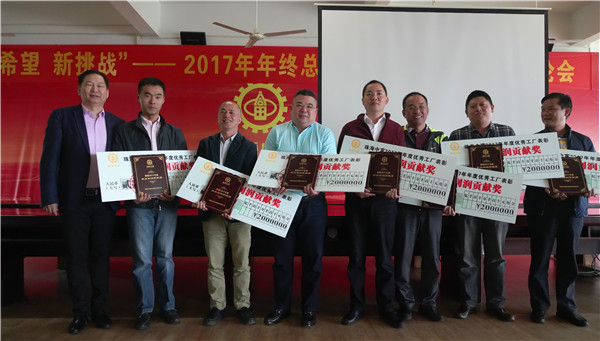 為了增強(qiáng)公司的凝聚力,表彰先進(jìn),樹立楷模,傳遞正能量,公司決定評(píng)選和表彰2017年度優(yōu)秀工廠、特殊貢獻(xiàn)先進(jìn)個(gè)人、優(yōu)秀員工和技術(shù)標(biāo)兵。獲獎(jiǎng)的工廠廠長(zhǎng)分別向與會(huì)者分享了成功經(jīng)驗(yàn)。